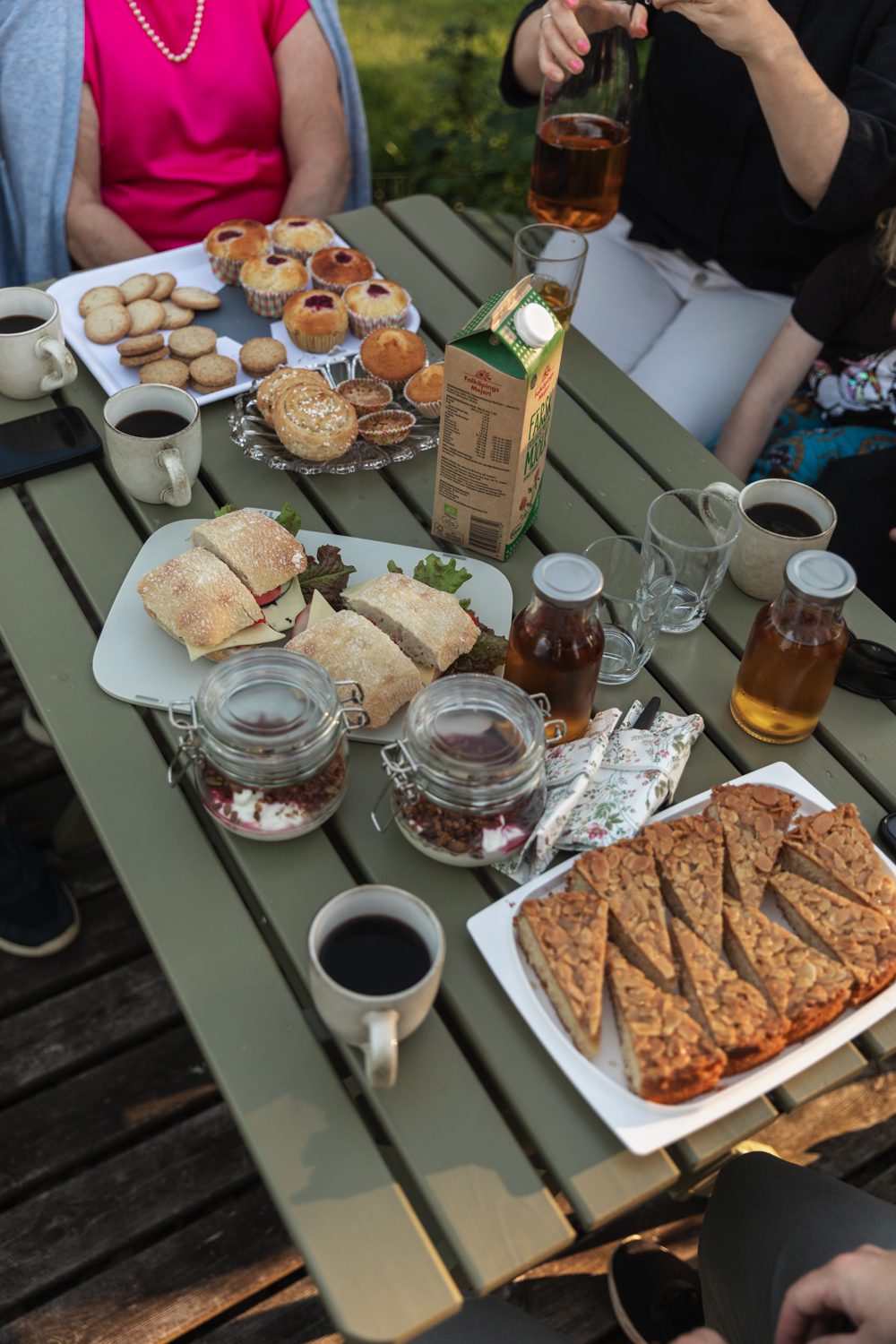En rejäl smörgås, yoghurt med hemmagjord granola och bärkompott, kaffe och juice – 120 kr